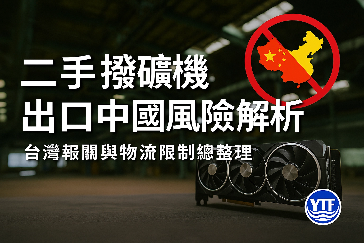 二手挖礦機出口中國風險解析|台灣報關與物流限制總整理隨著加密貨幣市場波動,中國部分地區仍有維修與二手挖礦設備的需求。許多台灣商家手上擁有大量二手 GPU 顯示卡與 ASIC 礦機,考慮出口至中國販售。然而,這類產品在報關與物流上卻潛藏不少風險。以下為您完整解析 2025 年台灣出口二手挖礦機到中國所需注意的重點。一、常見出口品項與其特性類別代表產品報關敏感性GPU 顯示卡RTX 3080/3090、RX 580 等易被視為「電子廢棄物」或再製品ASIC 礦機Bitmain Antminer 系列、WhatsMiner 等功率高+IC板密集,易抽查配件類電源供應器、主板、風扇模組視有無使用痕跡而定二、挖礦機出口常見風險總整理1. 中國海關將其視為「洋垃圾」或「非法再製電子品」若商品為明顯二手,且外觀損耗嚴重,容易被歸類為禁運品。特別是 GPU 散裝、無原包裝、批量出貨時,抽驗機率極高。2. 申報品名錯誤,導致退運或罰金使用模糊品名如「設備」、「主機」容易被視為刻意避稅。建議品名範例如:✅ 「顯示卡(二手維修用)」✅ 「加密計算專用設備(ASIC)」3. 功率高/含通訊模組會被管制某些高功耗 ASIC 符合「通訊設備」或「資料處理主機」稅則,須特殊報備。若含 WiFi/Bluetooth 功能,需有進口許可。4. 未分類報關導致無法開櫃或通關延遲若商品品項複雜,建議分批申報(GPU 另列,主機另列),降低海關警示。三、物流實務建議與應對策略✅ 避免一次大量裝箱寄送:分批出貨可降低集中抽查風險。✅ 妥善清潔並重新包裝:可提升外觀品質感,降低被視為廢品機率。✅ 附上檢修證明或維修報告:有助證明非垃圾或淘汰品。✅ 選擇具備中國清關經驗的物流商(如詠泰豐):能提供申報建議、避開敏感稅則分類。四、哪些省市對挖礦設備最敏感?地區海關風險說明廣東深圳管制高、科技產品抽查頻繁上海、浙江對高功率設備敏感東北三省相對較鬆,但需特別合規報關建議中小型商家尋求專業清關協助挖礦設備具備高價值與報關敏感雙重特性,稍有不慎即可能退運、扣貨甚至黑名單。建議您配合專業物流商,如詠泰豐,針對商品特性客製申報策略,降低風險,提高出貨成功率。
